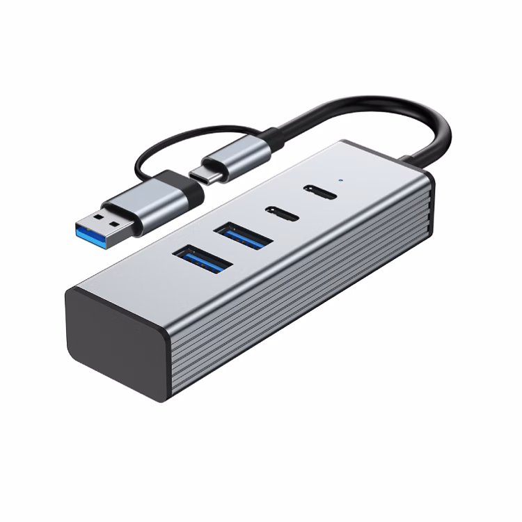 4 IN 2 HUB ADATTATORE ALLUMINIO MODEL BYL-2433TU USB-A / USB-C TO (2 USB-A 3.2 2 USB-C 3.2) (CON IMBALLAGGIO)