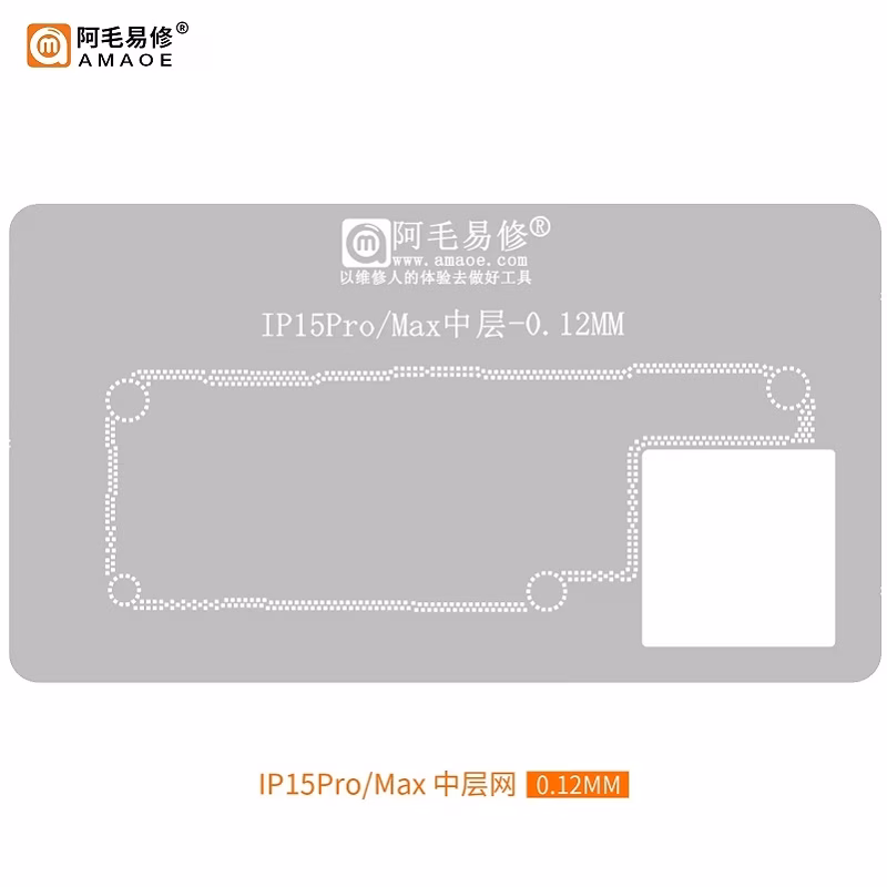 AMAOE IP15PRO/MAX 0.12mm STENCIL REBALLING BGA A STRATO INTERMEDIO PER APPLE IPHONE 15 PRO / 15 PRO MAX