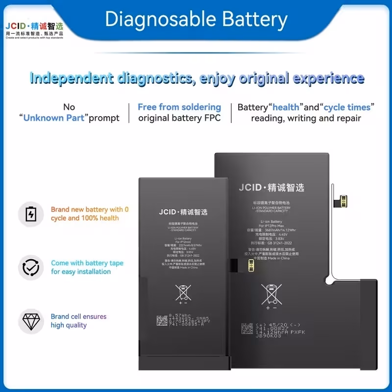 JCID BATTERIA DE GRANDE CAPACITA (3330 MAH) PER APPLE IPHONE 13 PRO 6.1 (DIAGNOSTICABILE BATTERIA NON È NECESSARIA LA SALDATURA CAVO BATTERIA ORIGINALE NESSUN MESSAGGIO "PARTE SCONOSCIUTA") (RICHIEDE AGGIORNAMENTO ALL'ULTIMA VERSIONE)