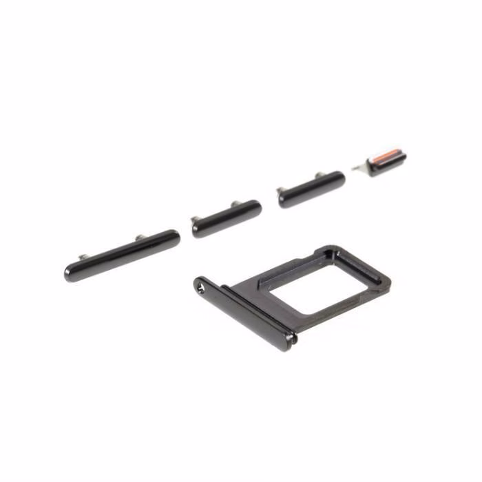 SET 4 PEZZI PORTA-SIM + TASTI VOLUME + TASTI POWER E TASTO VIBRAZIONE PER APPLE IPHONE 11 PRO 5.8 / IPHONE 11 PRO MAX 6.5 NERO