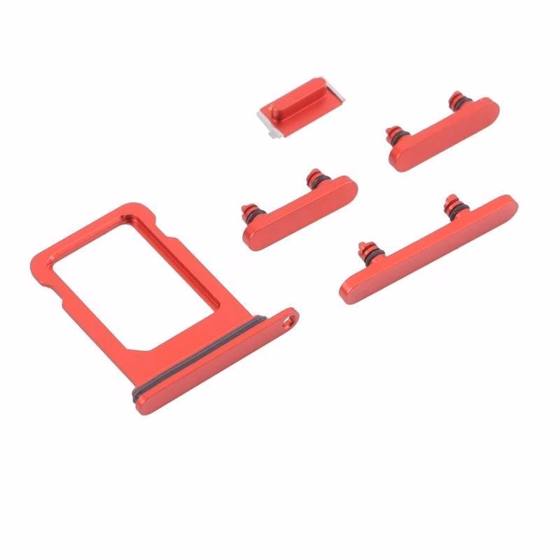 SET 4 PEZZI PORTA-SIM + TASTI VOLUME + TASTI POWER E TASTO VIBRAZIONE PER APPLE IPHONE 13 MINI 5.4 ROSSO